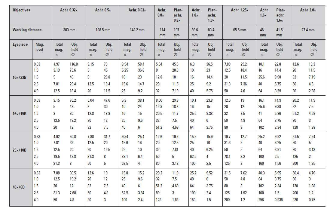 • Parfocally matched optical system: The sharpness remains constant when the magnification is changed