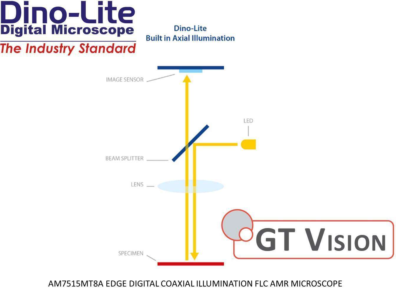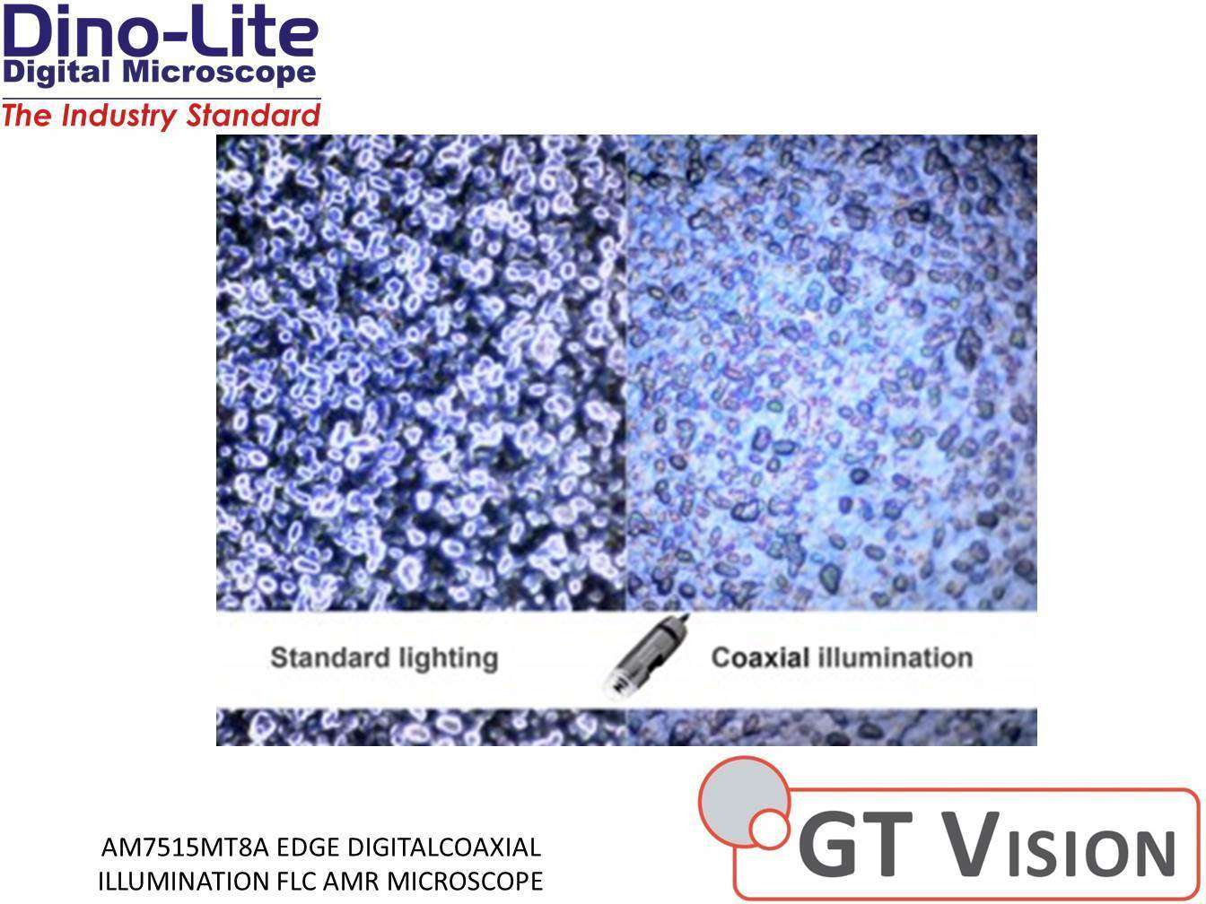 The AM7515MT8A is a 5MP Dino-Lite Edge Series microscope that has a magnification range of 700-900x with built-in coaxial illumination. By using the Flexible LED Control (FLC), this model is capable of switching between or mixing, brightfield and coaxial illumination.