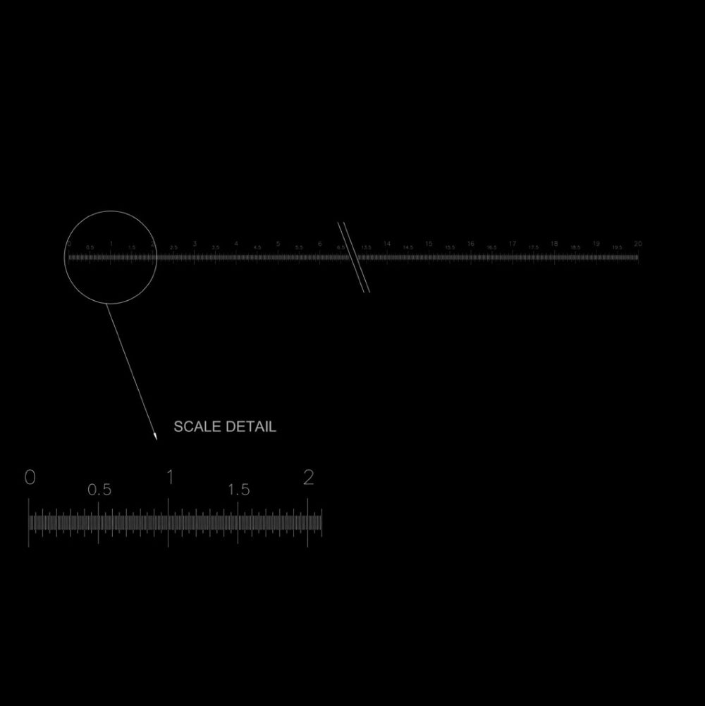 Stage Micrometer with 20mm scale subdivided into 2000 divisions of 0.01mm (10µm).