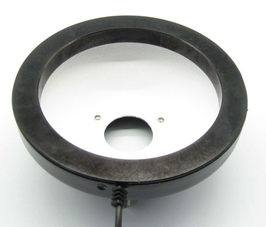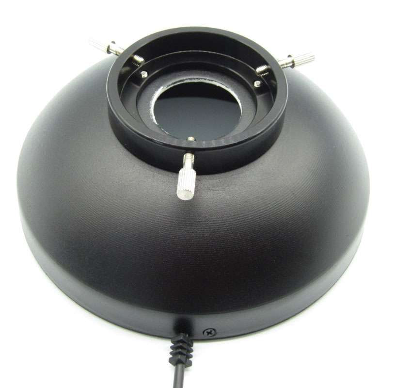 Dome illuminator. Supplies a gentle diffuse illumination to the sample. Ideal for shiny specimens or for those with a high contrast surface. Excellent for entomological samples.