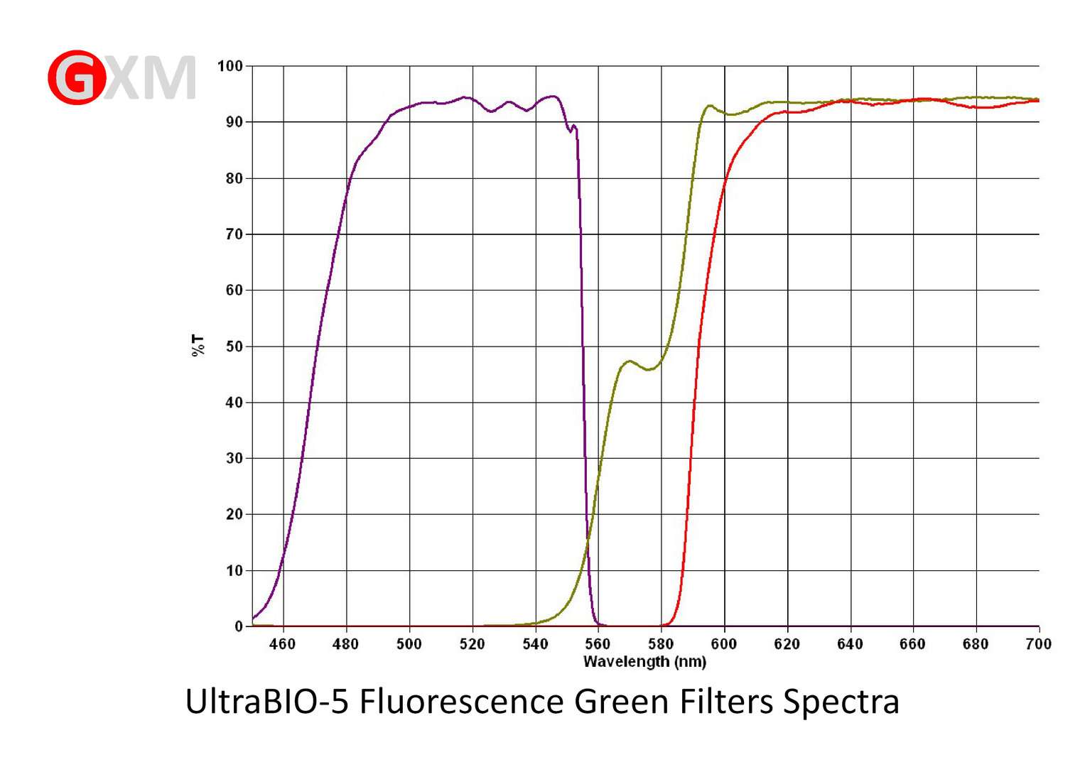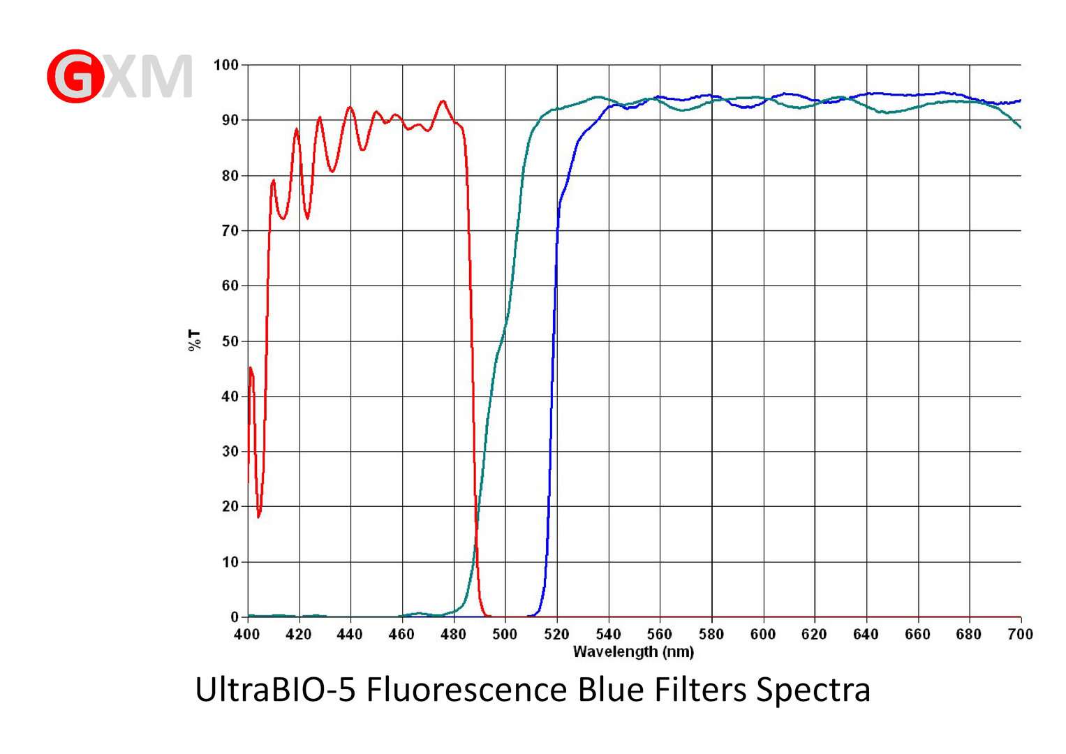 The fluorescence unit has four standard filter sets- UV (excitation 330-400nm, emission 425-700nm), Violet (excitation 395-415nm, emission 455-700nm), Blue (excitation 420-485nm, emission 515-700nm) and Green (excitation 460-550nm, emission 590-700nm). It is quick and easy to switch betwwen the filter sets, with the rotary selector. This fluorescence unit has long life LED illumination, so there are no costly bulbs to replace and no fiddly alignment issues.