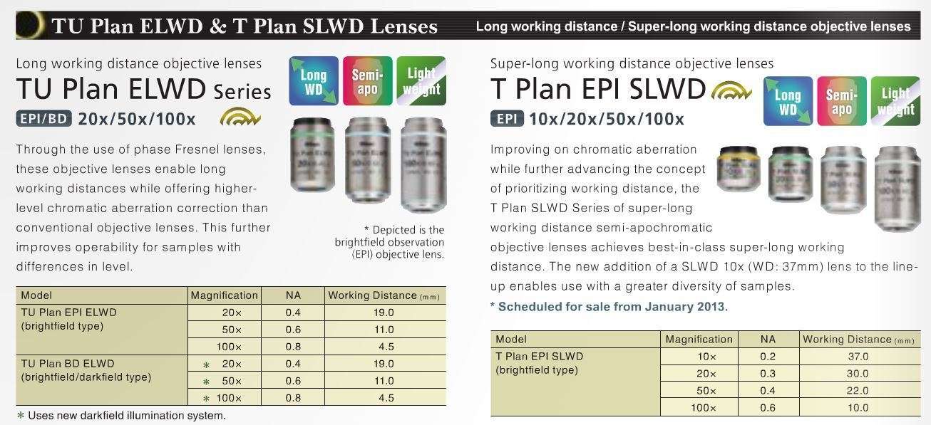 • Newly developed CFI60-2 series provides the ultimate in long working distance levels and the most advanced chromatic aberration in a light weight body