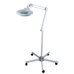 2.25X and 6X Long Reach, LED Illuminated, Articulated Arm Magnifier - Super-Wide, Ultra Slim-High Brightness, with Interchangeable Lens System with a G-Clamp & Premium Floor Stand. Main 2.25X lens (5 Diopter) with 6X secondary insert lens.