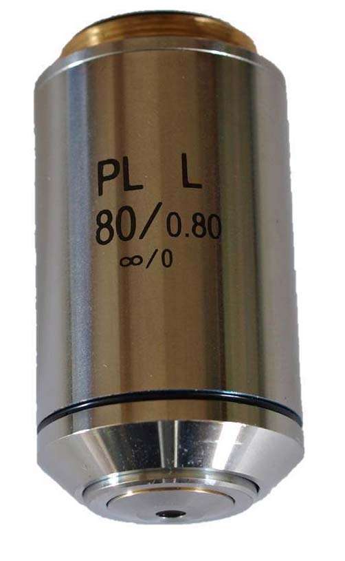 80x objective for L3230/ L3203 materials microscope. Non coverslip corrected