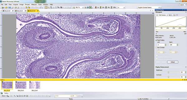 Included in your Basler PowerPack for Microscopy is the Basler Microscopy Software for camera control, image acquisition, processing and analysis. Camera and software are well-matched to ensure reliable performance. The easy installation as well as the intuitive user interface together with a comprehensive help tool for all features and functions makes your Basler PowerPack for Microscopy an ideal solution for monitoring, documentation and archiving in educational and routine research and industrial settings. Benefit from advanced professional software features, such as calibration, measurement, annotation and archiving. Hue, saturation, brightness, contrast, gamma and gain controls provide advanced image enhancement and color adjustment options, to achieve exceptional color reproduction. The software can be easily customized to best fit your workflow.