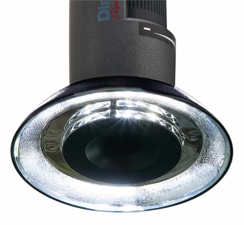 The N3C-R cap, measuring 6.5 cm (2.5 inch) in diameter is a simple yet powerful solution to provide ring illumination for a digital microscope. The N3C-R utilizes the Dino-Lite's built-in LEDs by redirecting it to form a focused, diffused, and uniform illumination of the object. On polarized models, such as the AM4115ZT, AM4515ZT and AM4815ZT, the polarizer can still be used to reduce the unwanted glare or reflection. It is not necessary to mount or power an external ring light, so no additional heat is produced and also no noticeable weight is added. This makes the N3C-R a very economical ring light solution, adding even more flexibility when using the Dino-Lite.