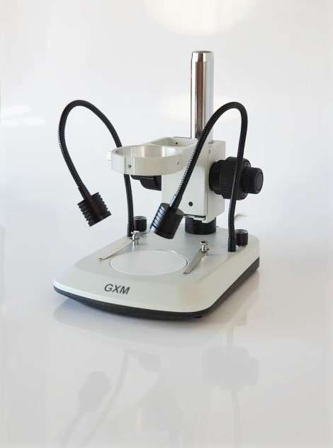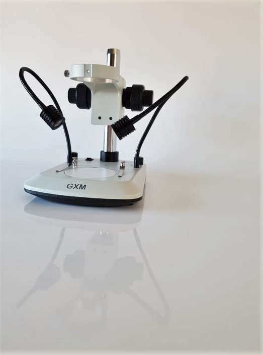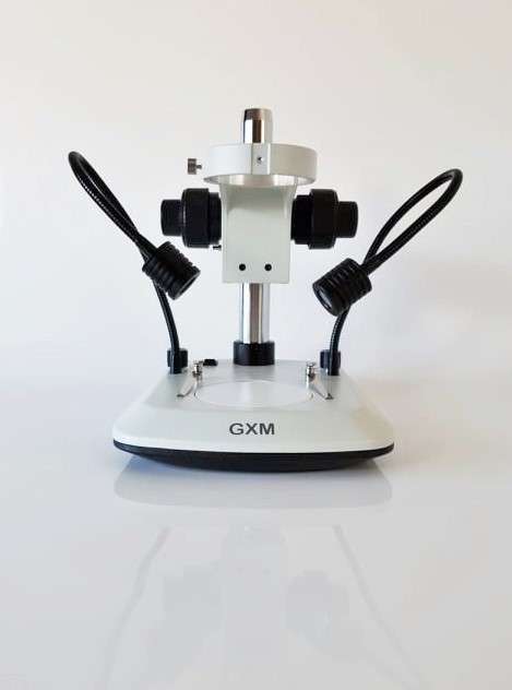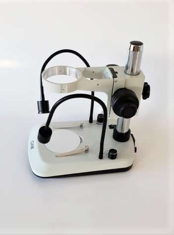 - Versatile stand with dual LED gooseneck incident light illumination and LED transmitted light illumination.