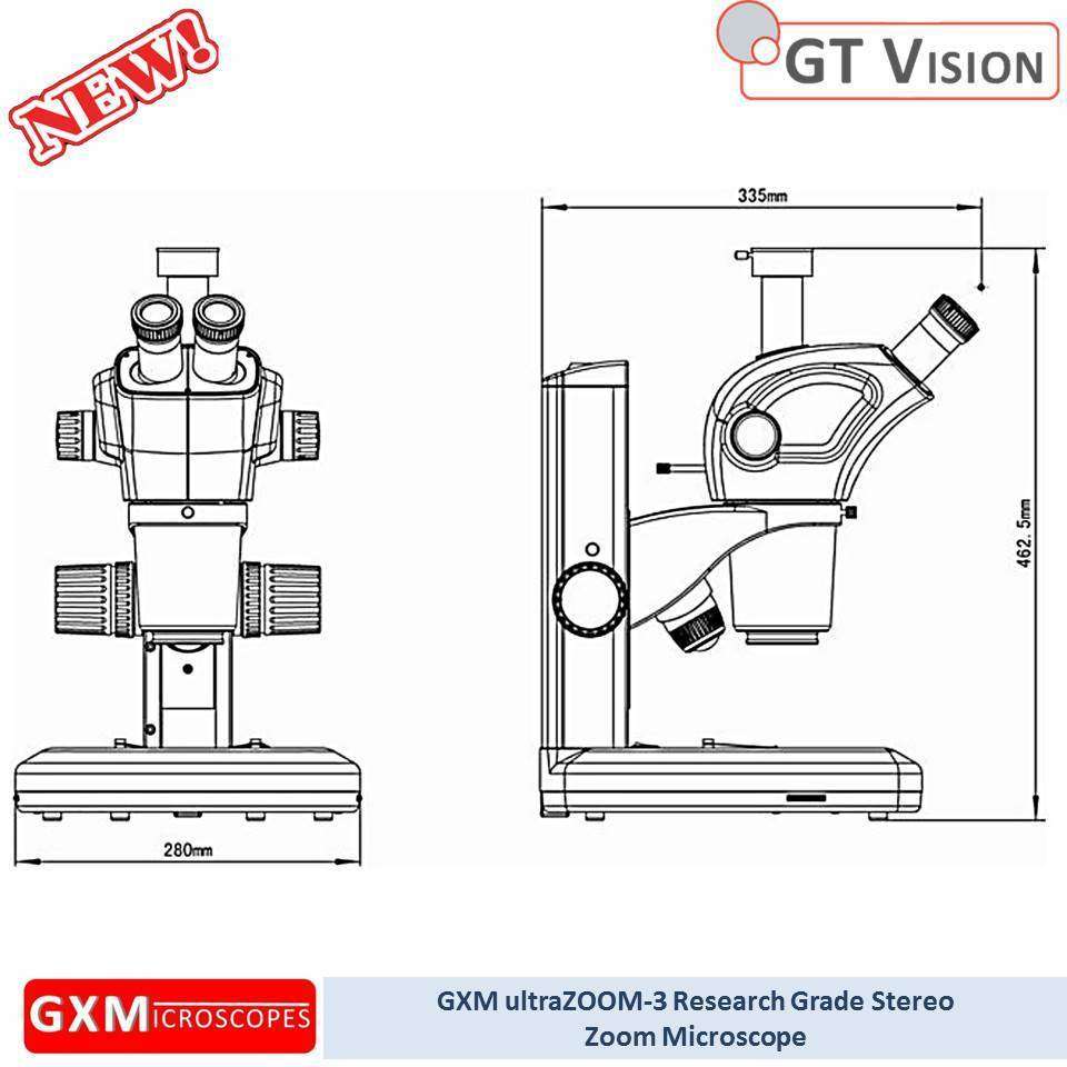 GX Microscopes ultraZOOM-3 Research Grade, Long Working Distance, Trinocular Stereo Microscope